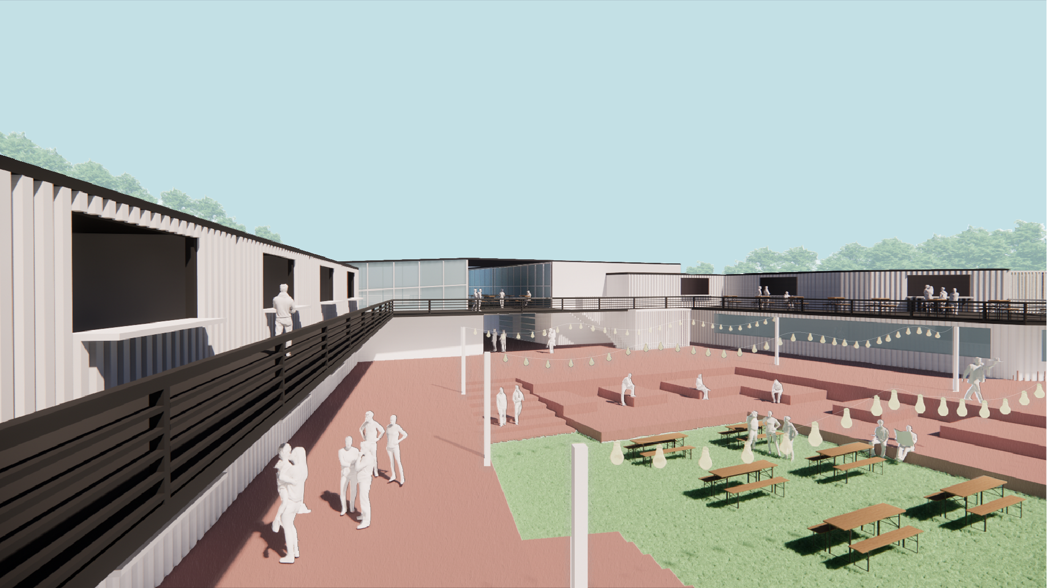 Central courtyard: contains an entertainment stage and shared seating to foster community within the space.